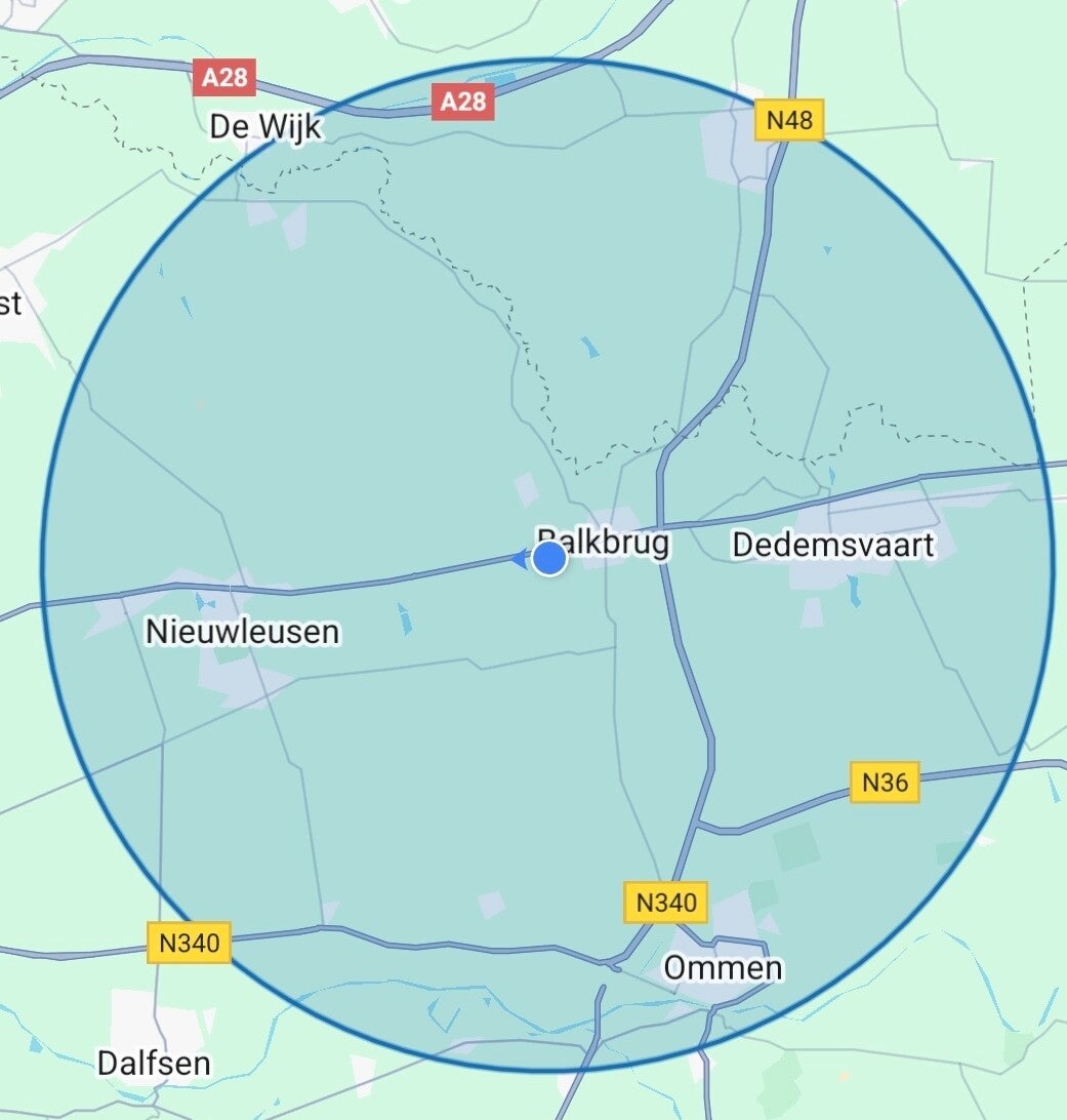 Prijs is inclusief brengen en halen op locatie binnen een straal van 10 km vanaf Balkbrug.